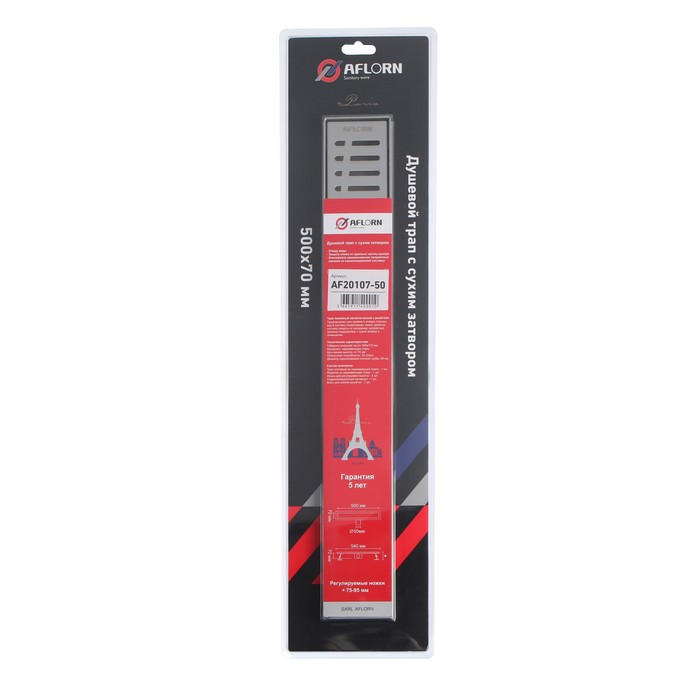 Линейный трап для душа с гидро затвором AFLORN. Имеет вытянутую прямоугольную форму, также называют дренажным каналом или душевым лотком.