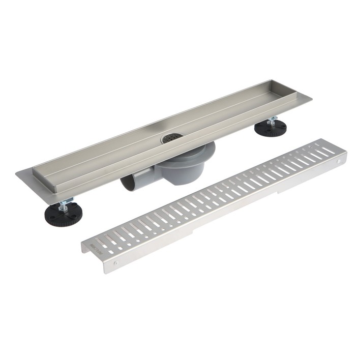 Сверху конструкция трапа закрывается декоративной решеткой из нержавеющей стали. Трап устанавливается в пол, регулируемые ножки от 75 до 95 мм.