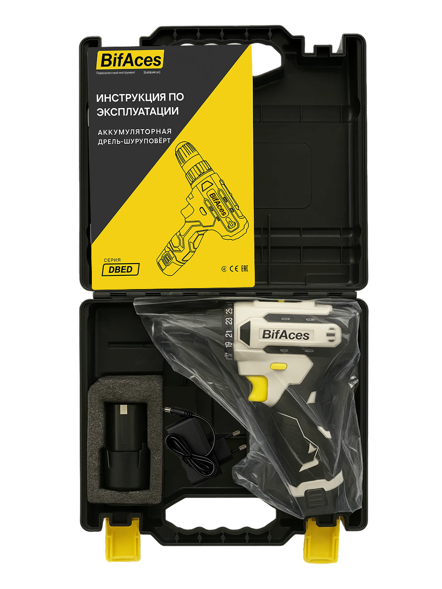Аккумуляторная дрель-шуруповерт BifAces DBED-12A с батареей Li-Ion 12 В и максимальным крутящим моментом в 28 Н·м ,