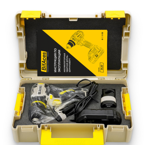 Аккумуляторная ударная дрель-шуруповерт BifAces DLID-16 с батареей Li-Ion 16 В и максимальным крутящим моментом в 60 Н·м, предназначена для монтажа и демонтажа резьбовых соединений, сверления отверстий в металле, древесине, пластмассе и других материалах.
