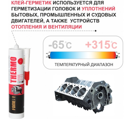 Силиконовый высокотемпературный герметик FOME FLEX Thermo (красный; 315 градусов; 300 мл) 01-4-2-006 применяют для уплотнения прокладок и головок автомобильных, промышленных и корабельных двигателей,