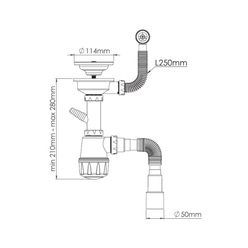 Сифон для керамической мойки с выпуском 3 1/2 с круглым переливом, латунный винт 45, выход гибкая труба 1 1/2 Ø 40/50.