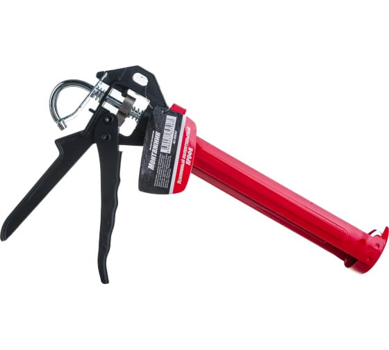 Усиленный полуоткрытый пистолет для герметика Монтажник Профи 600107 подойдет для работы с составами высокой вязкости.
